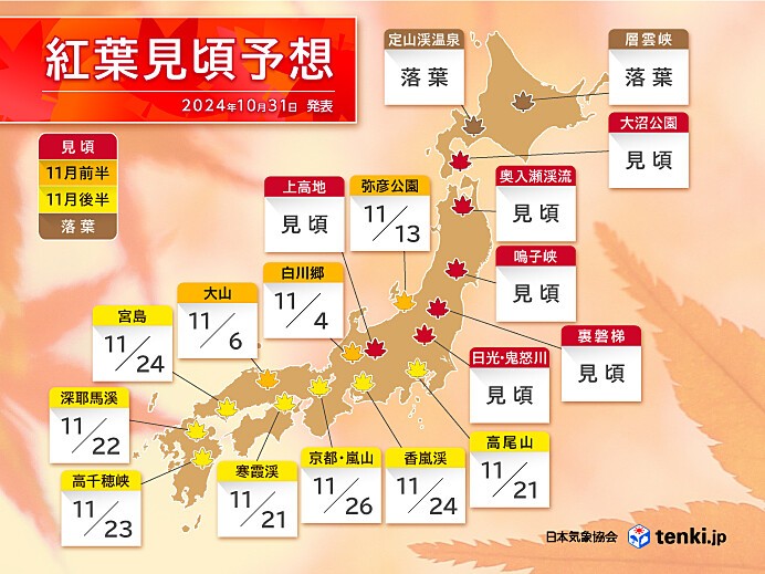 紅葉見頃時間參考網站 ( TENK , Weather News , 日本氣象株式會社 )