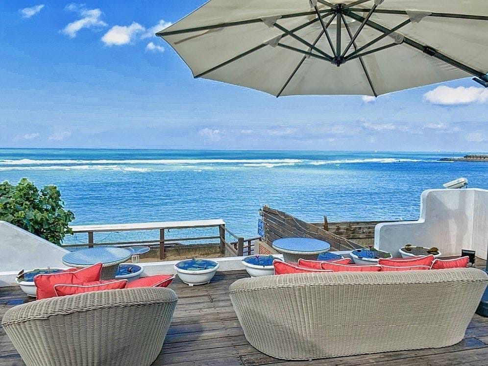 Style & Highlights: Bali-inspired design with swings and wooden outdoor seating that opens directly onto the beach—perfect for catching the sunset.