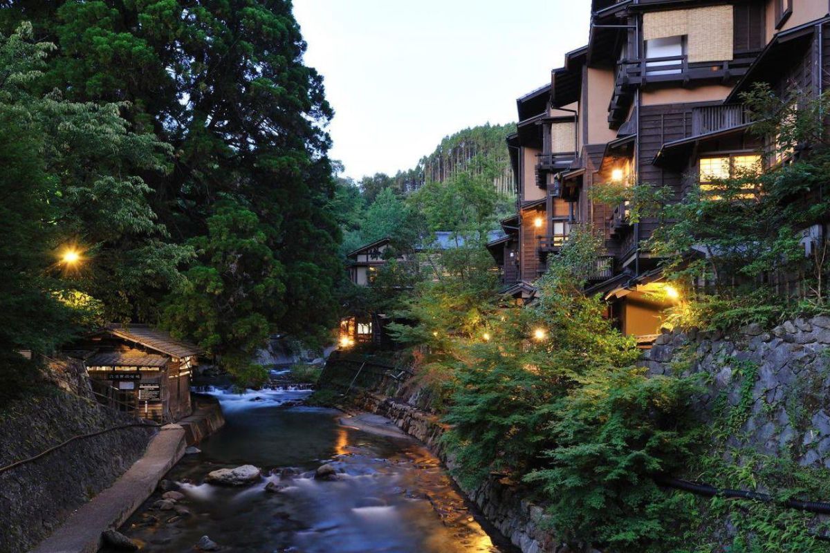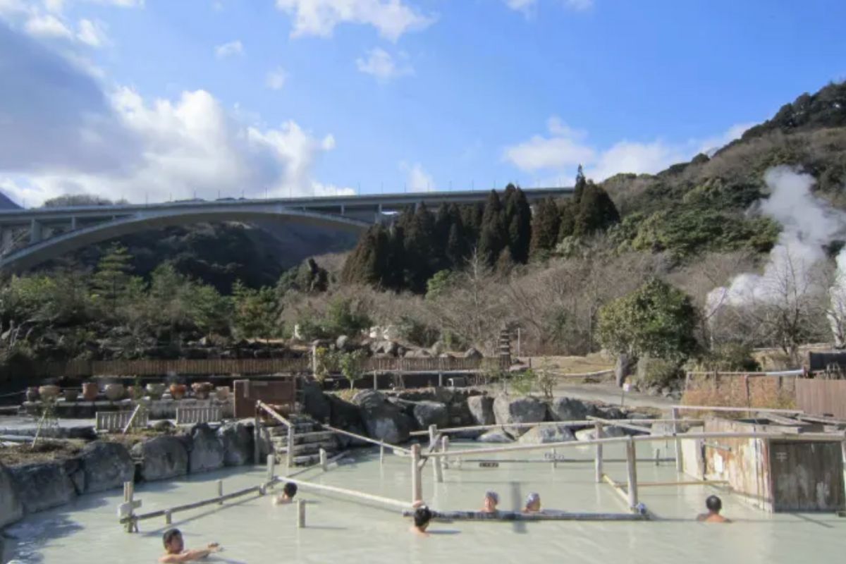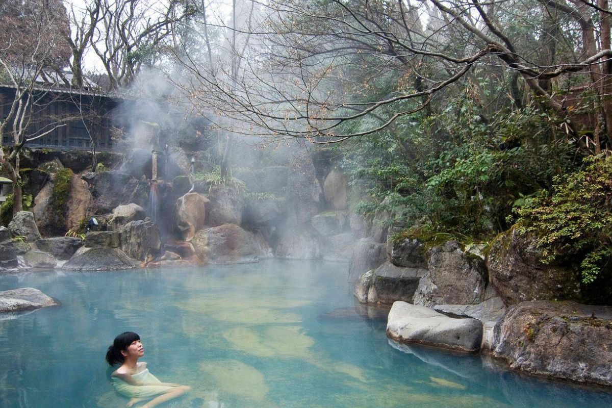A secluded hot spring village surrounded by forests, famous for its unique outdoor bath culture.