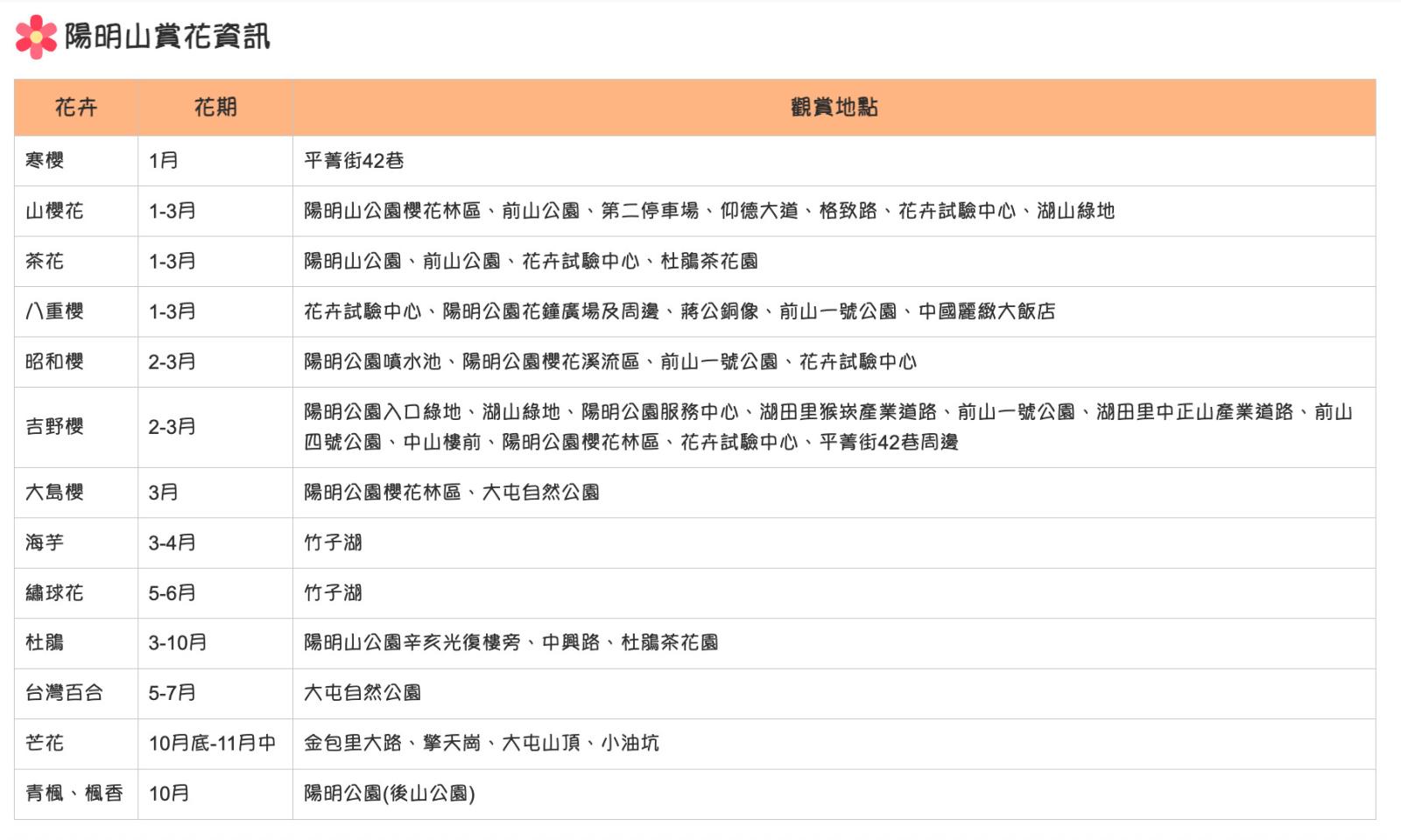 賞花行程沒有做功課=現場崩潰。這邊幫你把該查的資訊都集中打包,再也不用擔心你Google老半天還是找錯地方