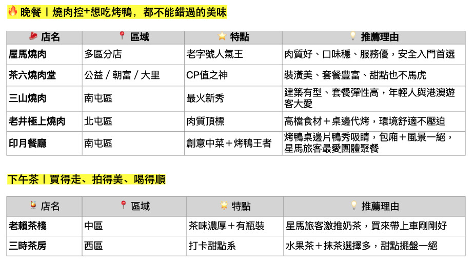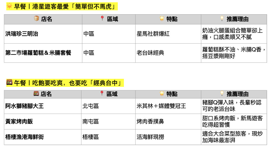 新加坡與檳城 → 台中
