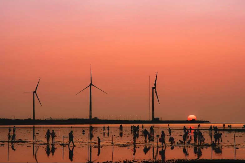 台灣日落TOP 1,風車、倒影、水鳥與海天一色一次打包。